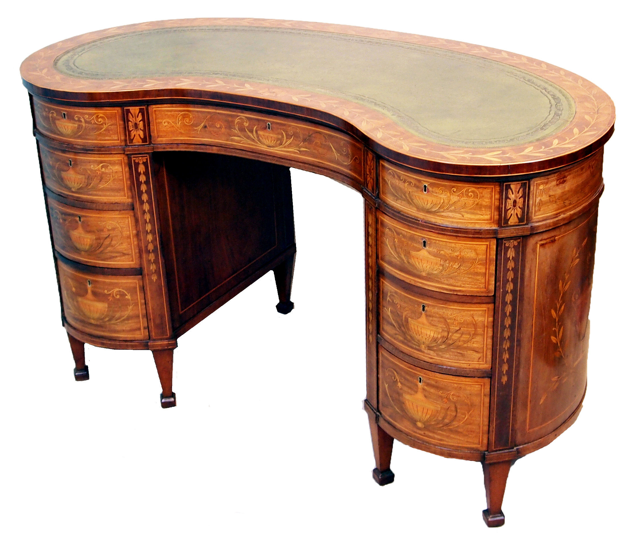 Desk Having Inset Leather Top Above Nine Drawers