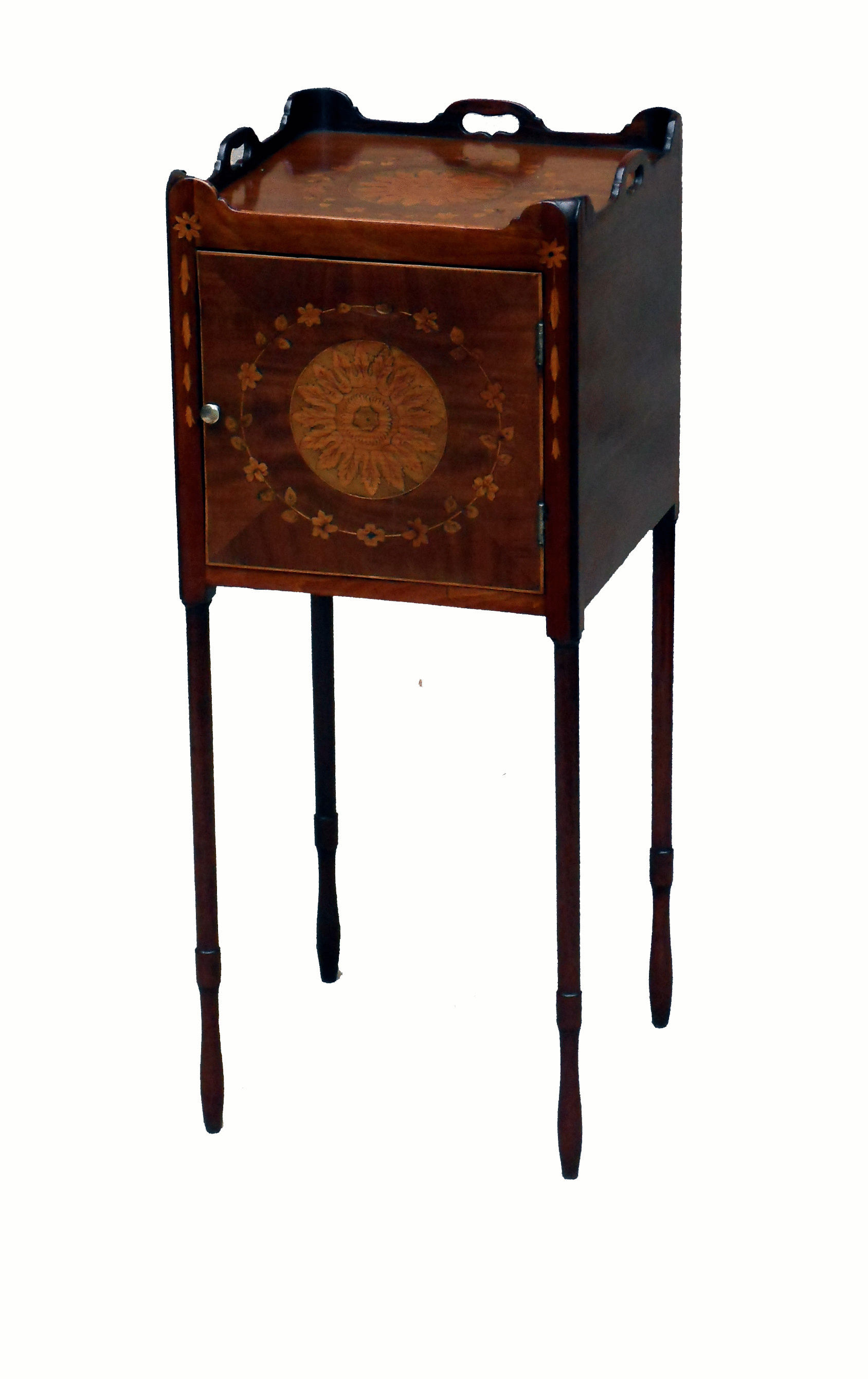 Antique Mahogany Marquetry Inlaid Bedside Pot Cupboard (England, circa 1800)
