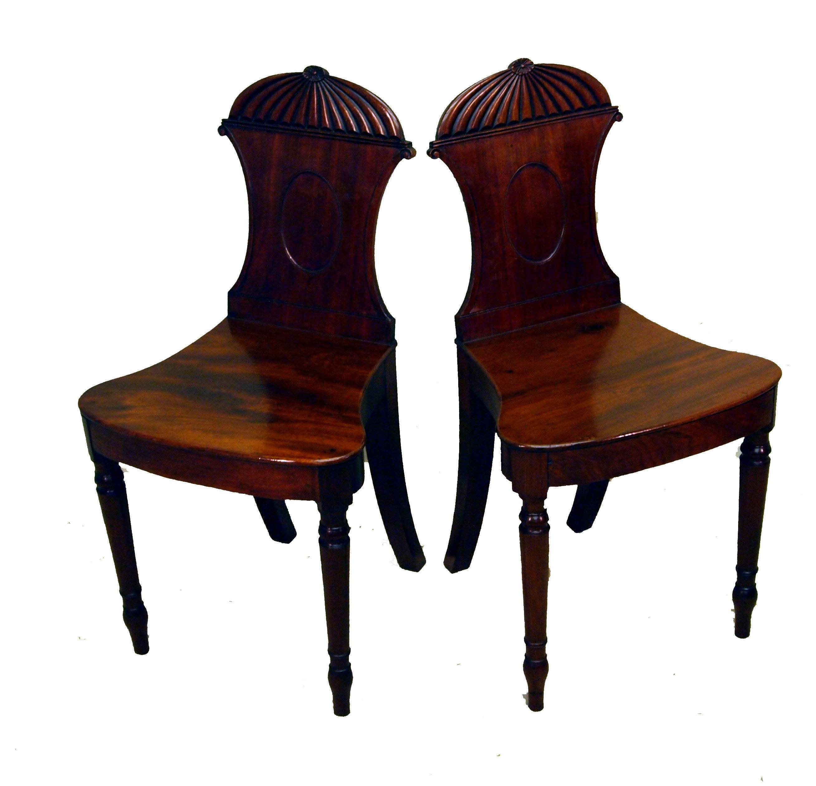 Antique Mahogany Pair Of Hall Chairs (England, circa 1810)