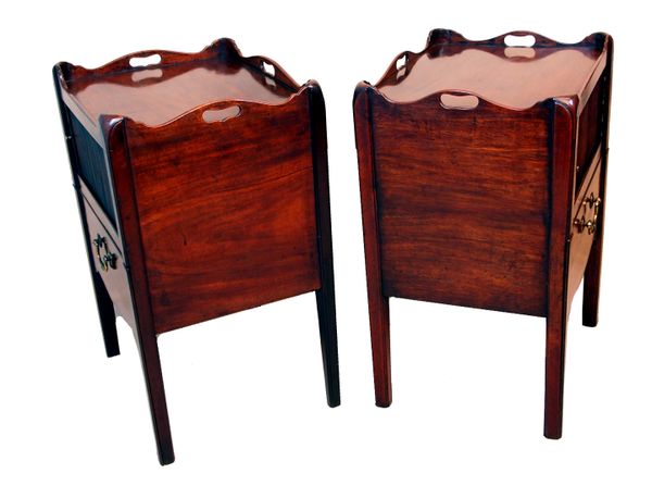 Antique Matched Pair Of Georgian Mahogany Tray Top Commodes (England, circa 1790)