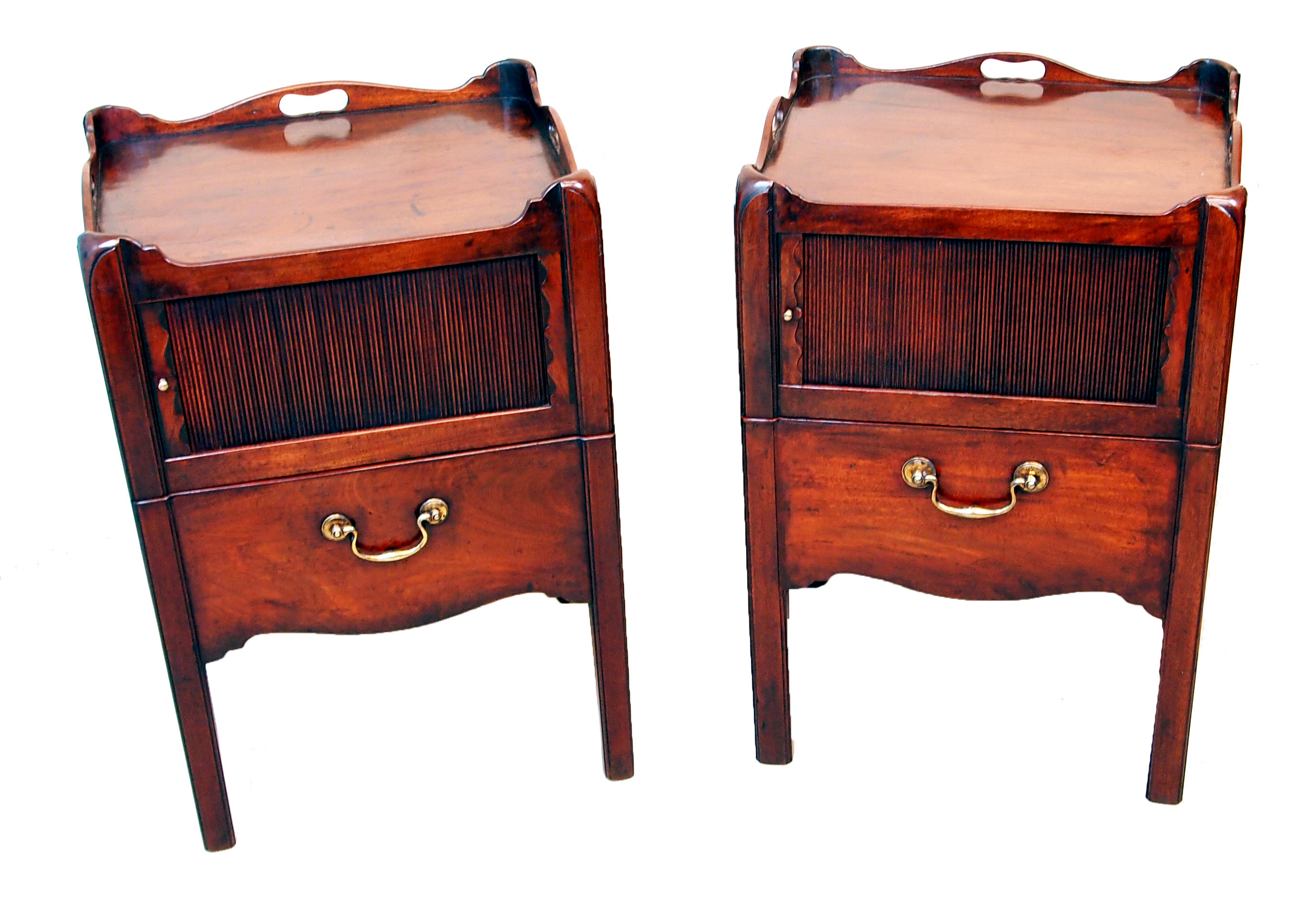 Antique Matched Pair Of Georgian Mahogany Tray Top Commodes (England, circa 1790)
