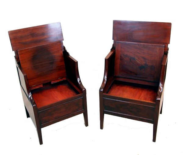A Very Good Quality Near Pair Of ‘Lancashire’ Commodes, or Night Tables, With Hinged Tops, Panelled Sides And Reeded