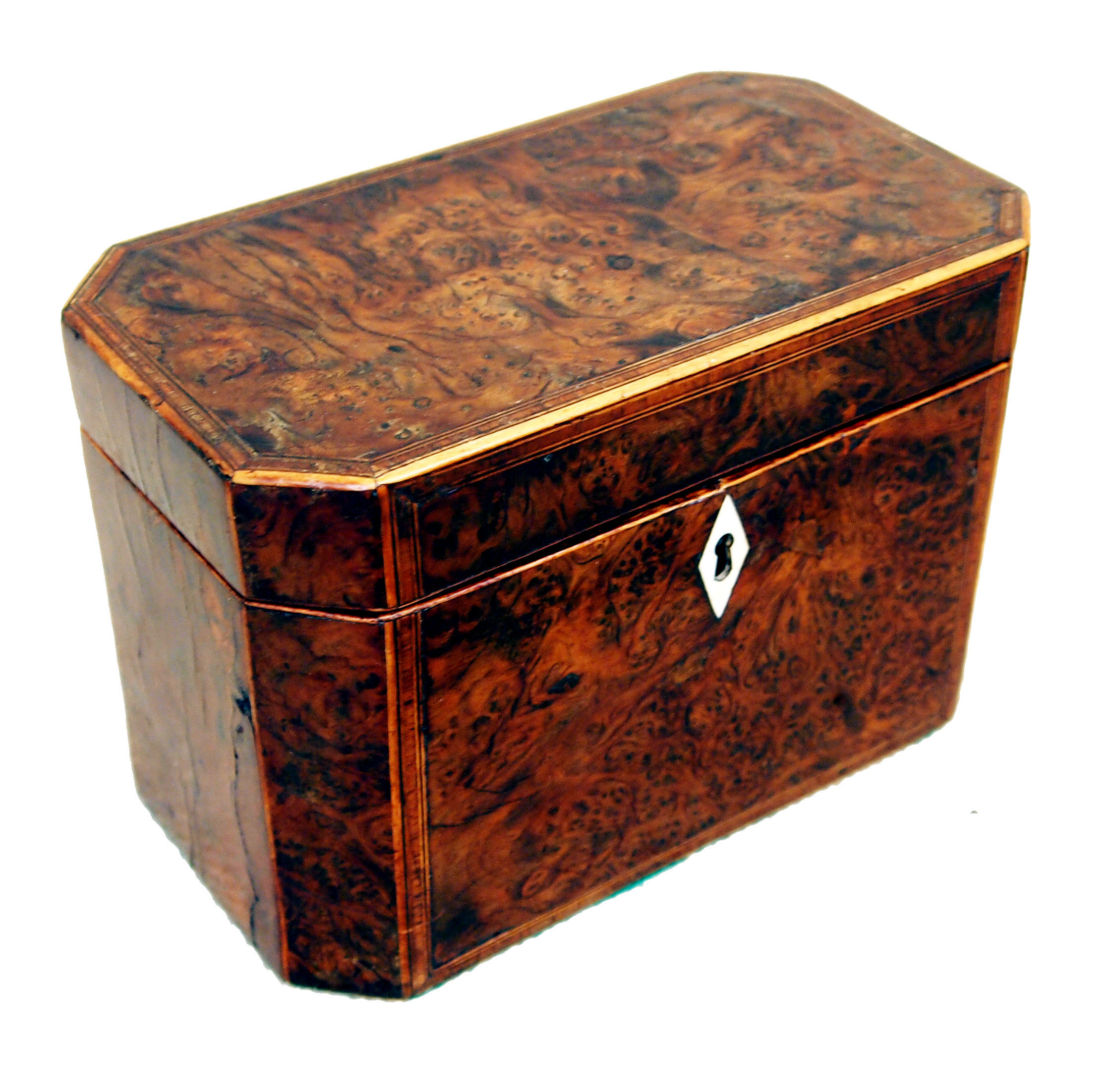 Antique Octagonal Yew Caddy (England, circa 1800)