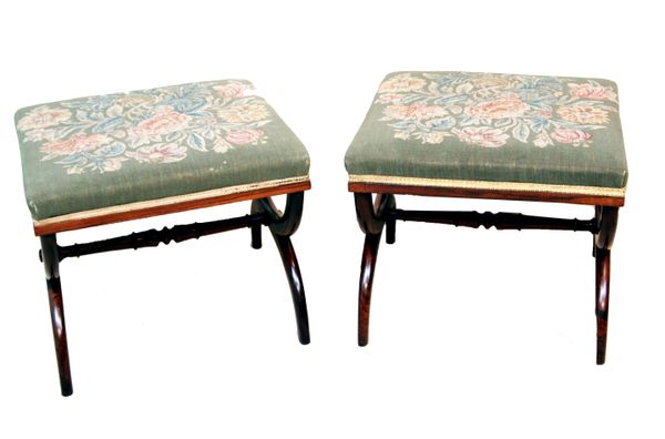 Antique Pair Of Regency Rosewood Stools (England, circa 1825)
