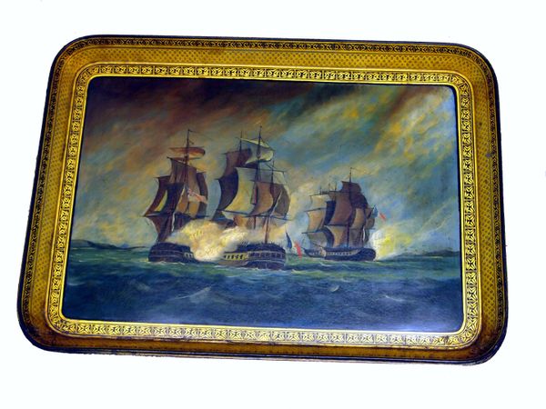 Floral Gilded Decoration To Border And Painted Ship