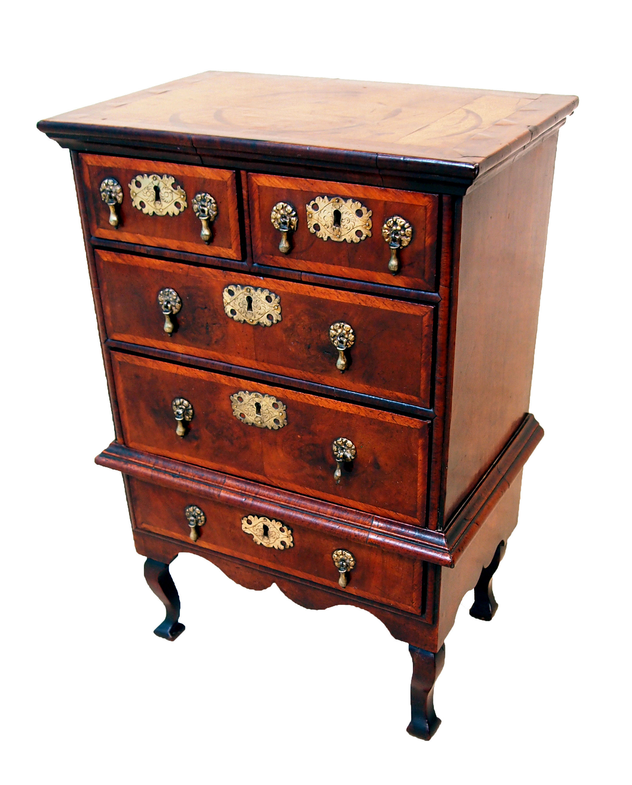 Antique Queen Anne Miniature Walnut Chest On Stand (England, circa 1710)