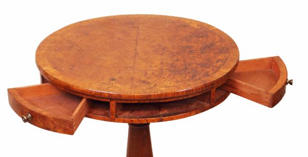 Antique Regency Burr Oak Drum Type Occasional Table (England, circa 1830)