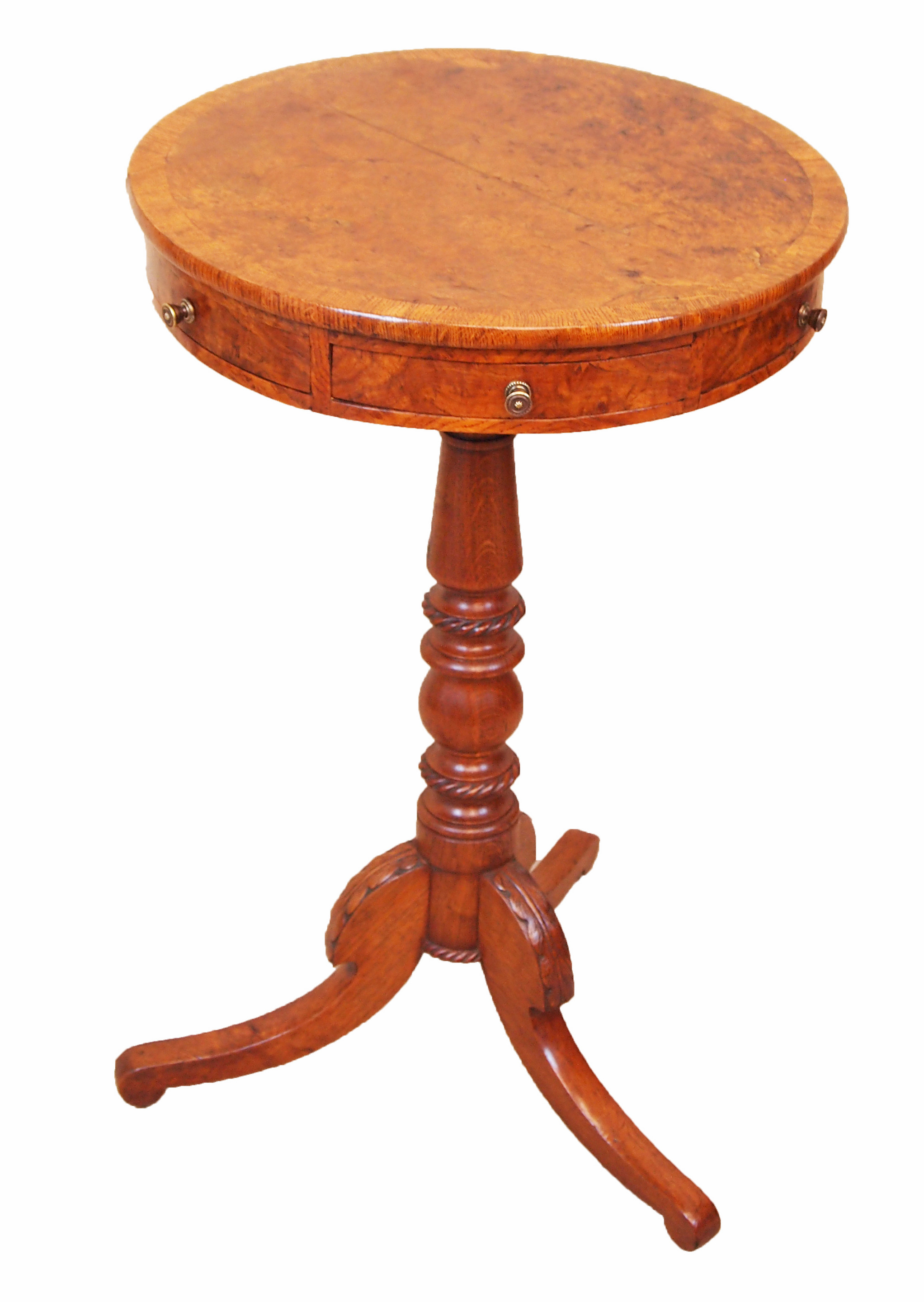 A Delightful Late Regency Period Burr Oak And Oak Drum Type Occasional