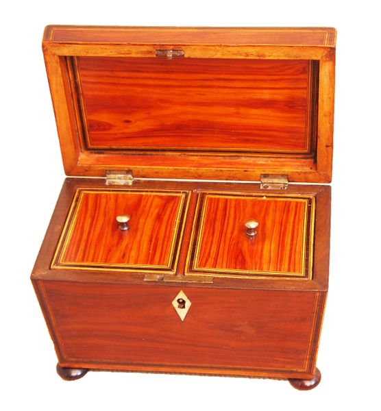 Alves Wood Tea Caddy Having Inlaid Decoration Raised On