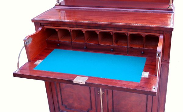 Gallery And Solid Brass Turned End Supports Above Secretaire