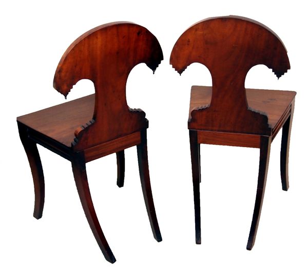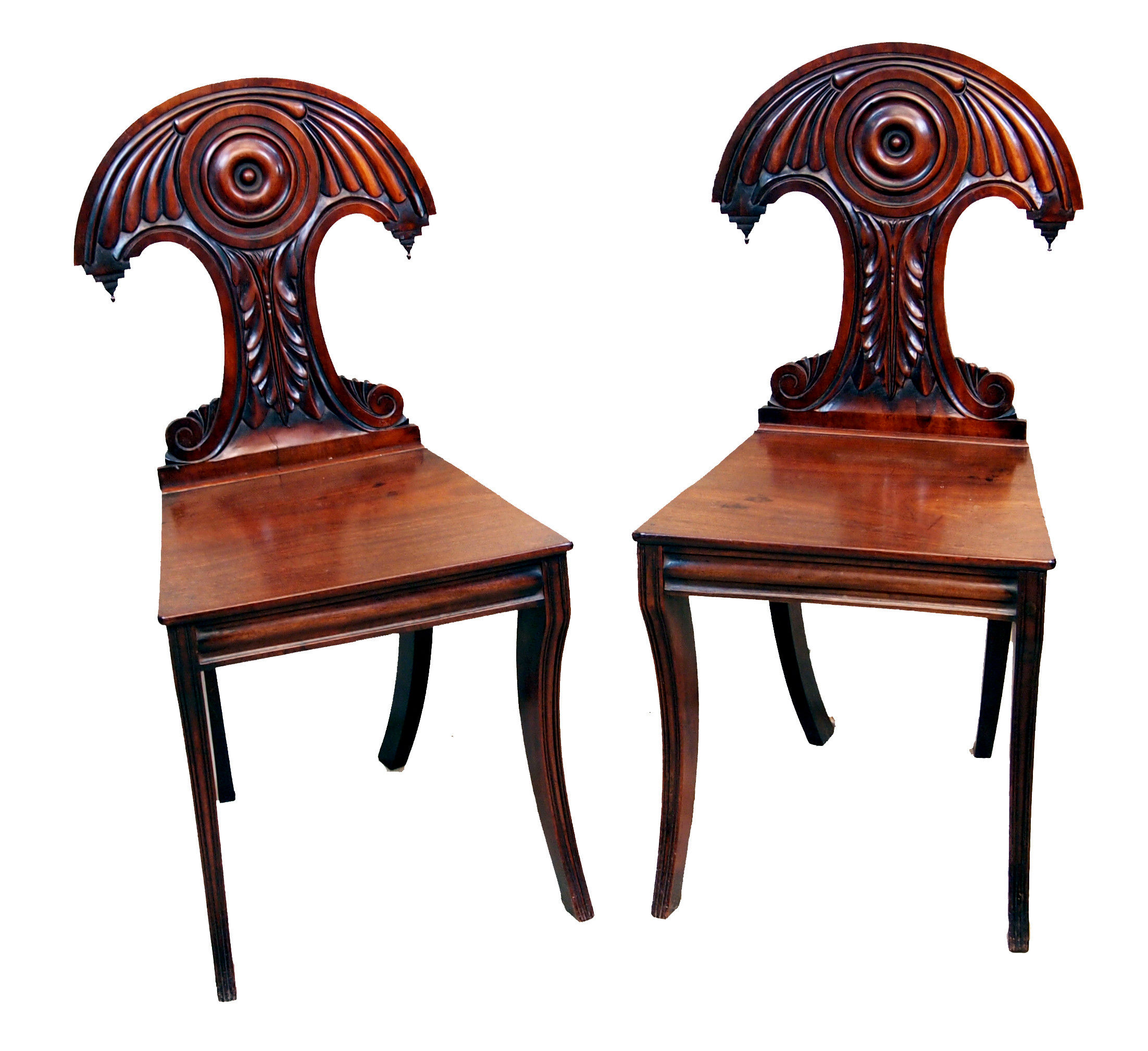 Antique Regency Mahogany Pair Hall Chairs (England, circa 1820)