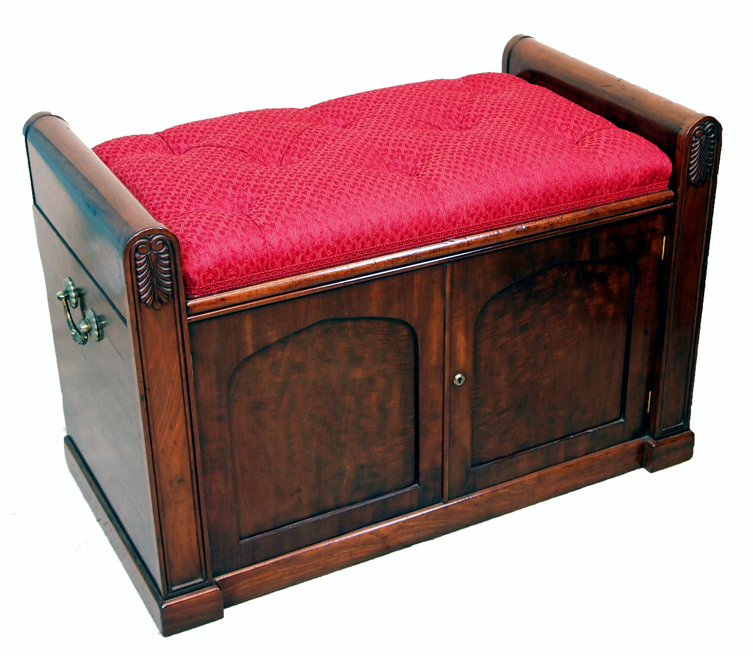Upholstered Lift Up Lid Above Two False Doors Flanked By Foliate