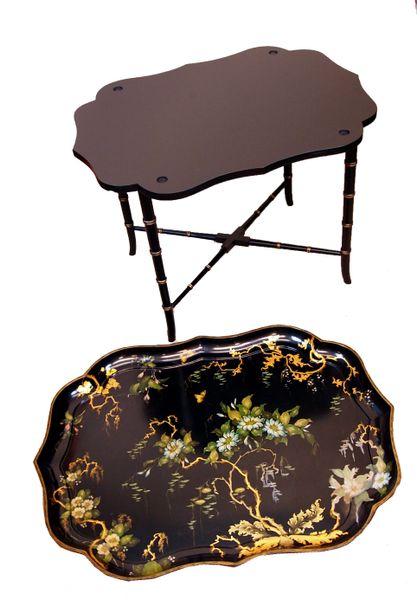 Antique Regency Papier Mache Tray On Stand (England, circa 1830)