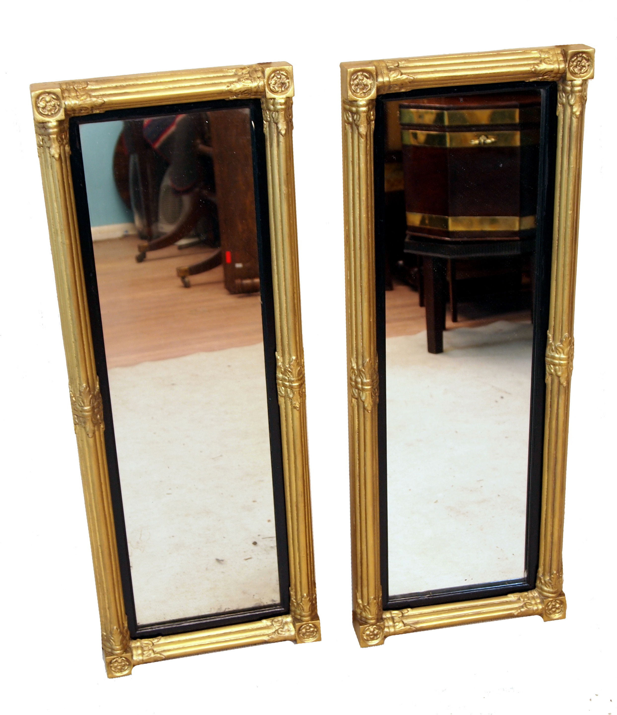 An Unusual Pair Of Regency Gilt Pier, Or Overmantel, Mirrors Of