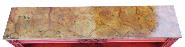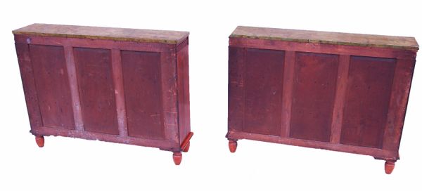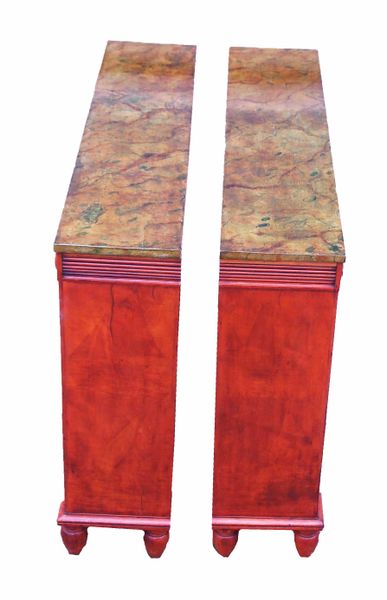 Open Bookcases Having Replacement Faux Marble Painted Tops Above Fluted