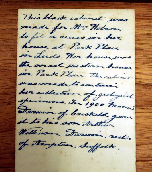 This cabinet has almost certainly been produced by one of the best cabinet making firms of the time due to the high quality materials used in all parts of the construction including the concealed drawers & trays, which are faced with decorative rosewood veneers. It also bears a paper label to the underside of a drawer lining, stating who the cabinet was made for and where they lived. Unfortunately the label doesn’t state the maker but based on the overall quality & design, along with the particularly fine & distinctive brass inlay we suggest George Oakley.