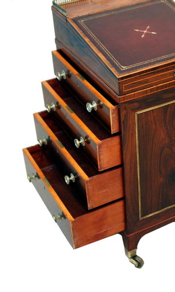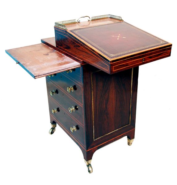 An Exceptional Quality Regency Period Rosewood Davenport With Original Brass Gallery