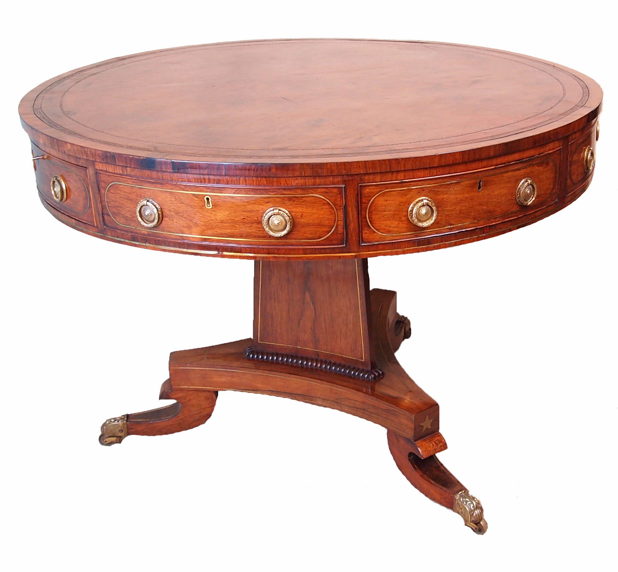 Antique Regency Rosewood Drum Table (England, circa 1825)