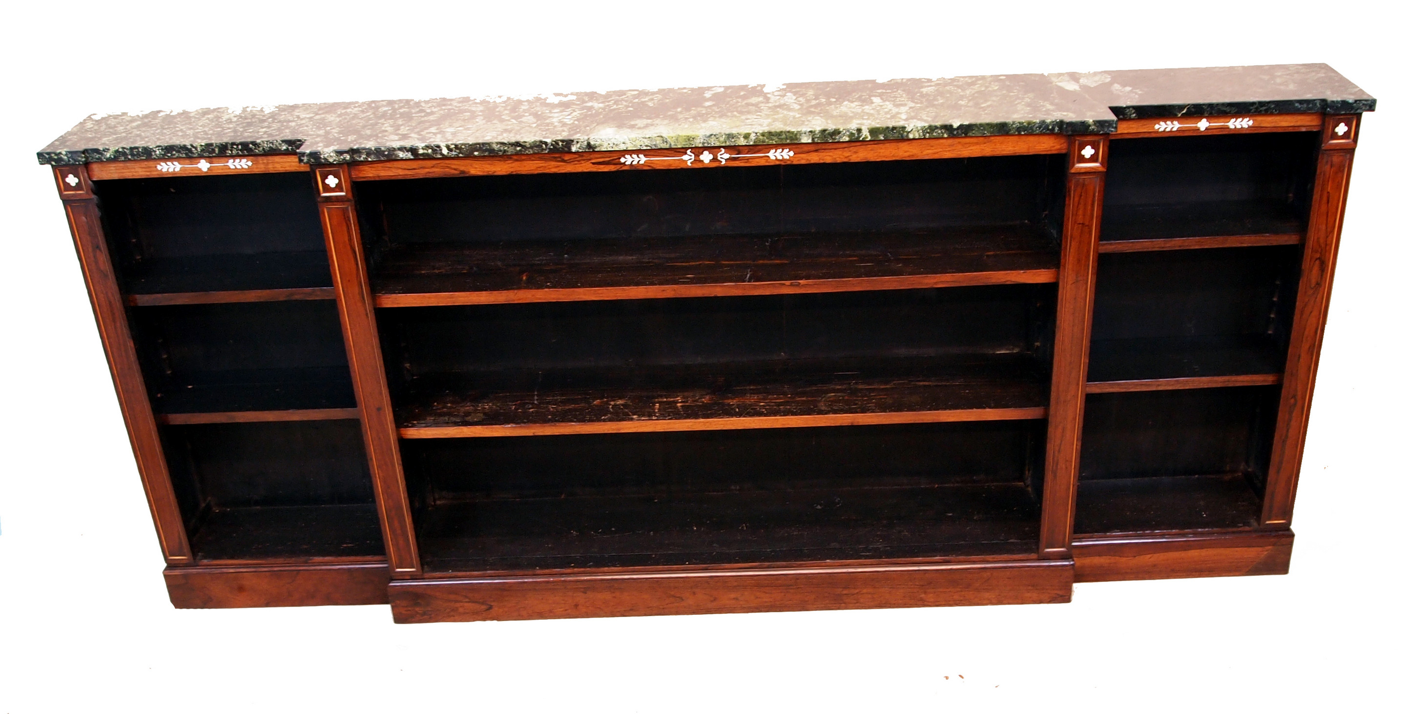 Open Bookcase Having Delightful Replaced Marble Top Above
