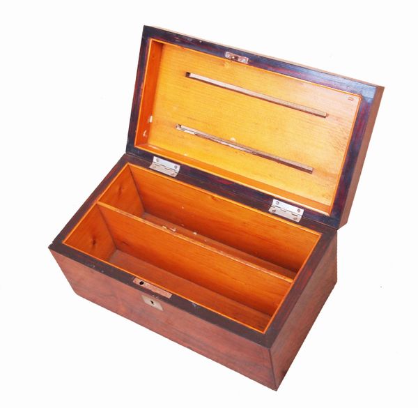 A Delightful Regency Period Rosewood Letter Box Having Brass Inlaid Detail