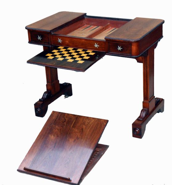 Antique Regency Rosewood Library Games Table (England, circa 1820)