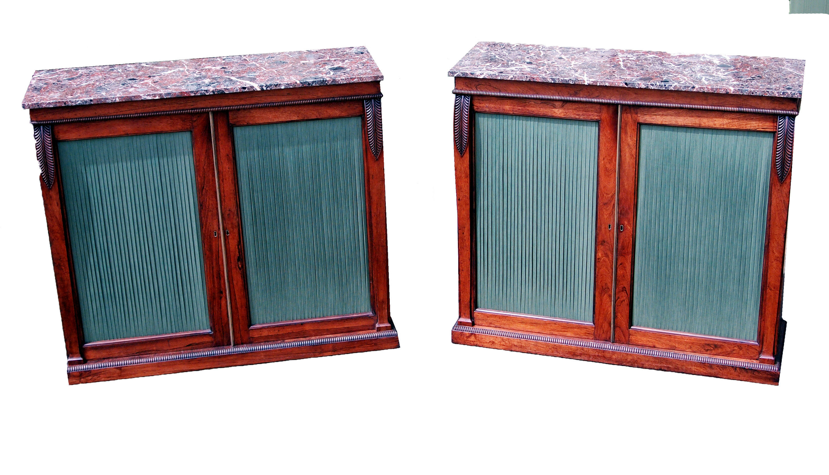 Cabinets Having Verde Antico Marble Tops Above Two Pleated