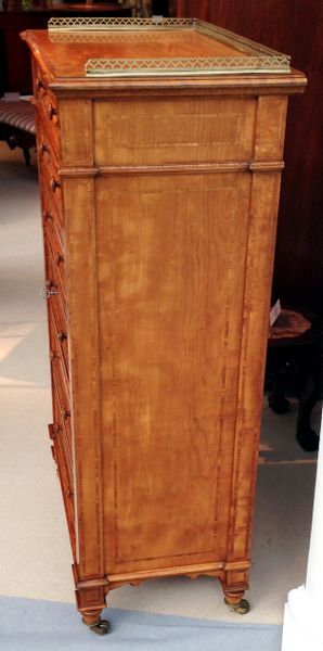Antique Satin Birch Wellington Type Pedestal Chest (England, circa 1860)