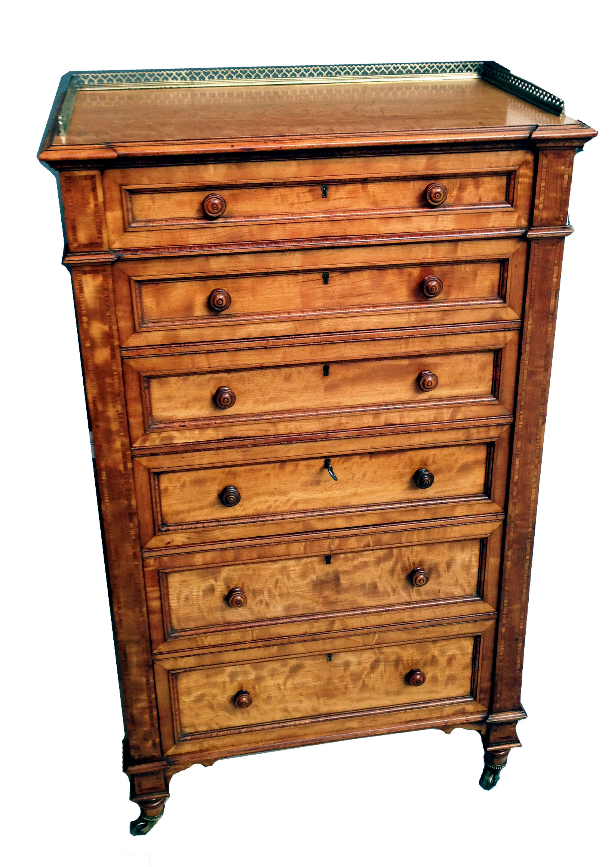 Antique Satin Birch Wellington Type Pedestal Chest (England, circa 1860)