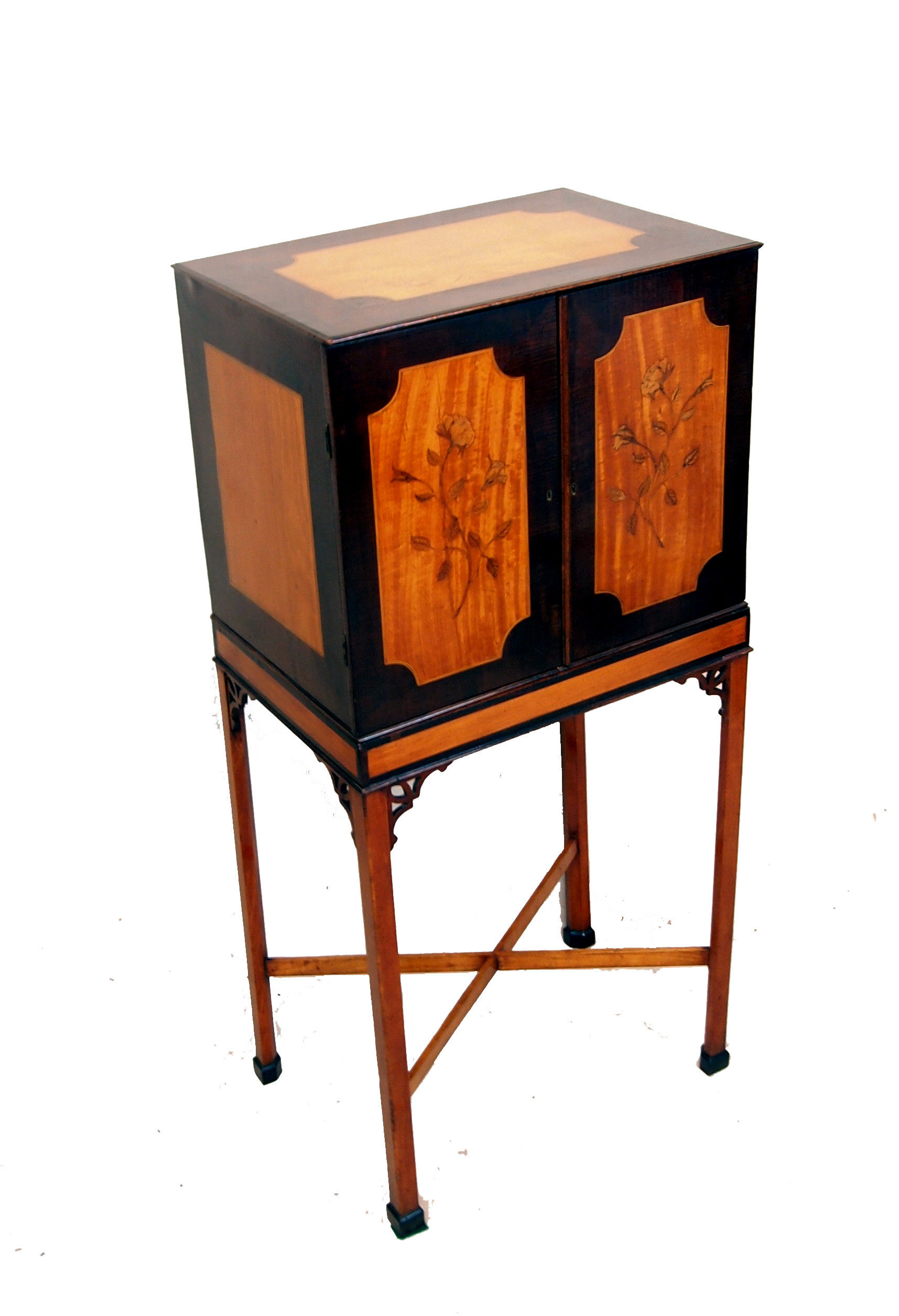 Collectors Cabinet Having Intricate Flowering Vines Inlaid To