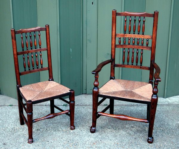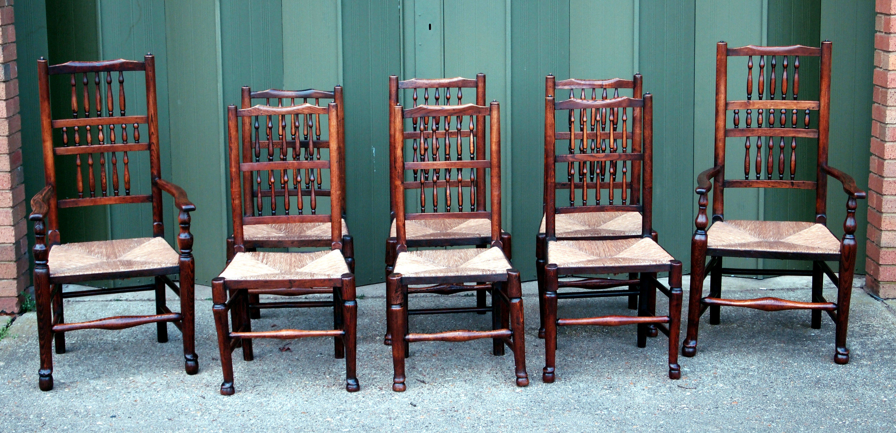 Antique Set Of Eight Early 19th Century Spindle Back Dining Chairs (Lancashire, circa 1800)