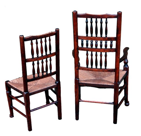 Early 19th Century Ash & Elm Spindle Back Dining Chairs Having
