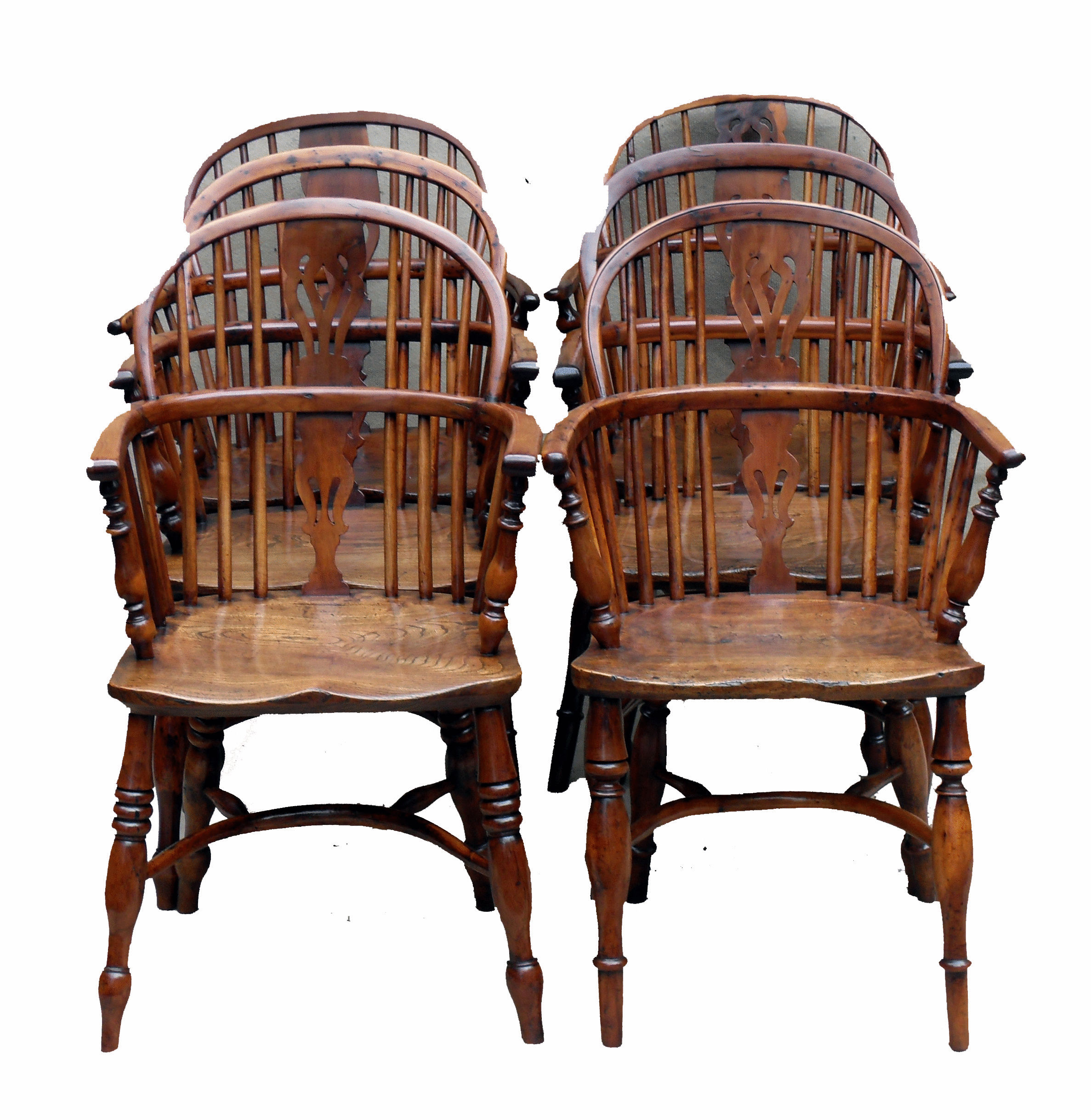 Antique Set Of Six Matched Yew Windsor Chairs (England, circa 1840)