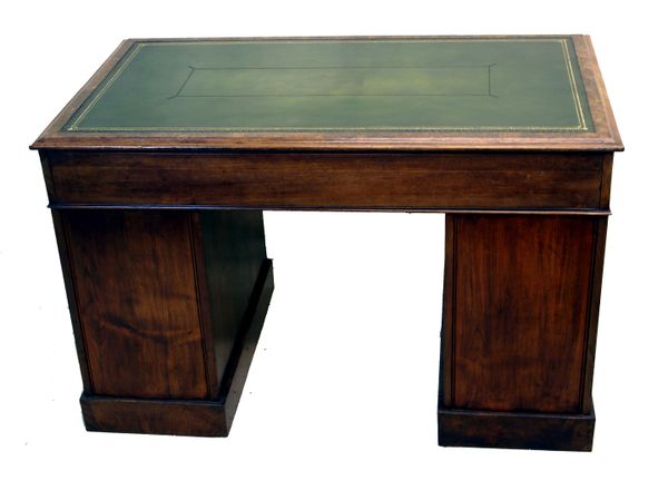 Having Gilt Tooled Leather Top Above Nine Mahogany Lined