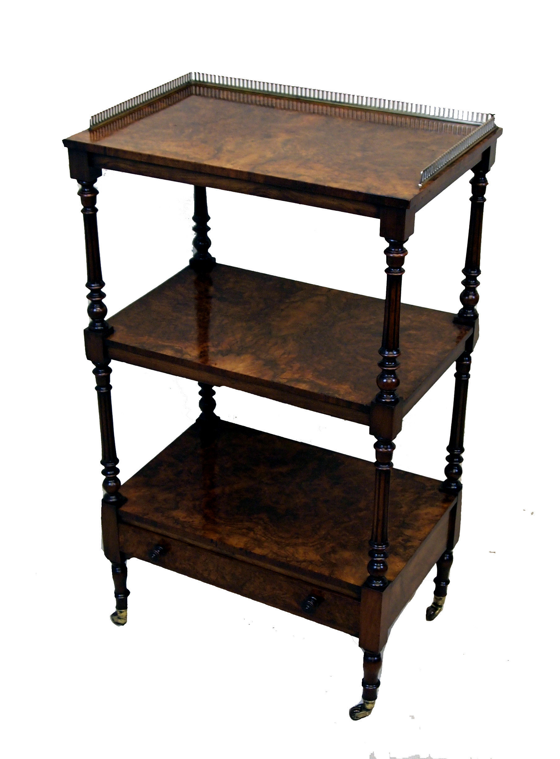 Antique Victorian Burr Walnut Whatnot (England, circa 1850)