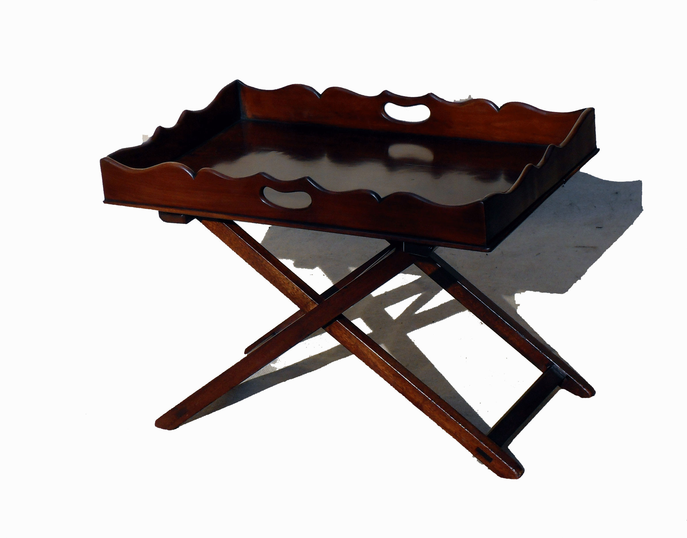 Antique Walnut Butlers Tray On Stand (England, circa 1860)