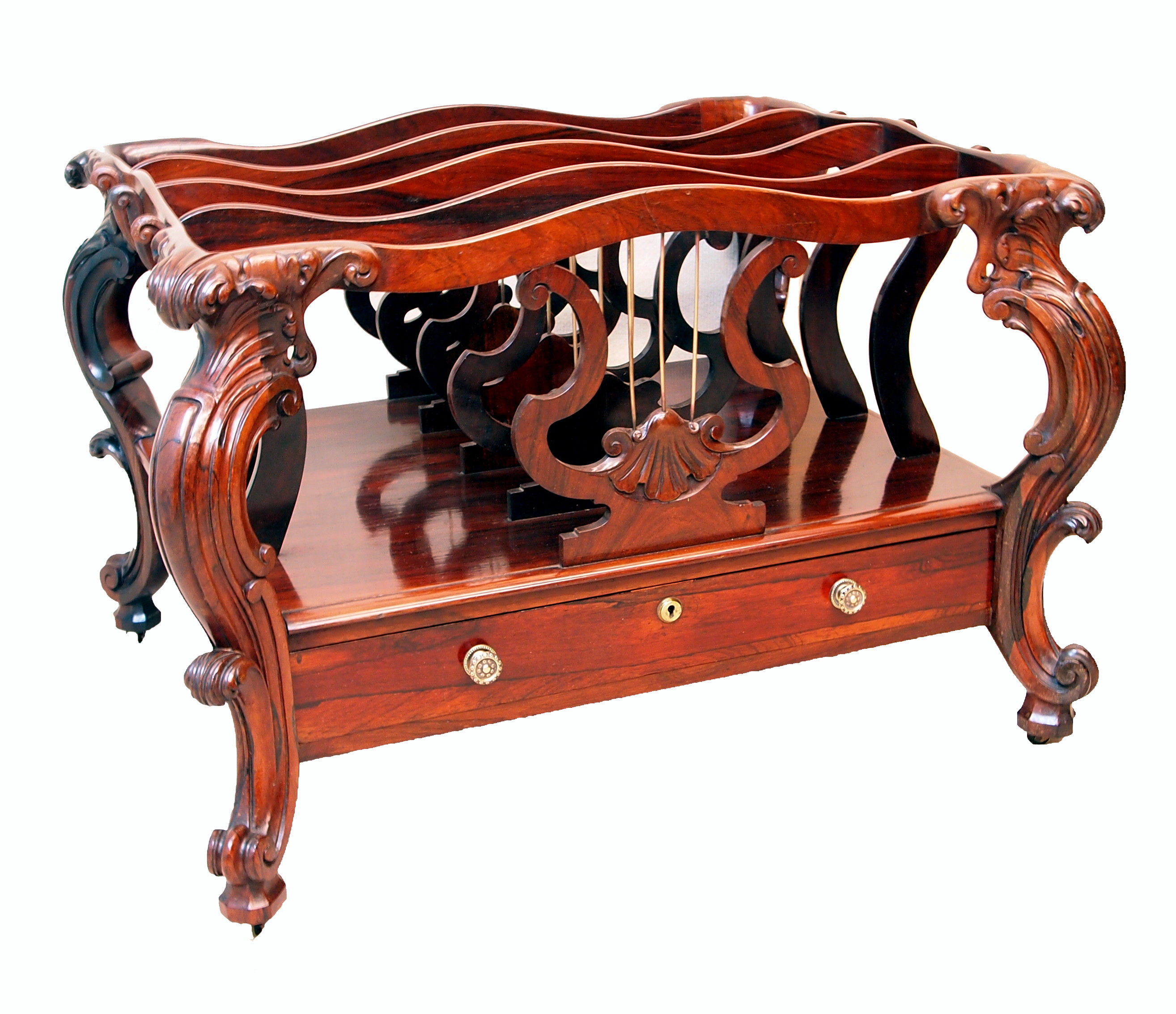Antique William IV Period Large Rosewood Canterbury (England, circa 1835)