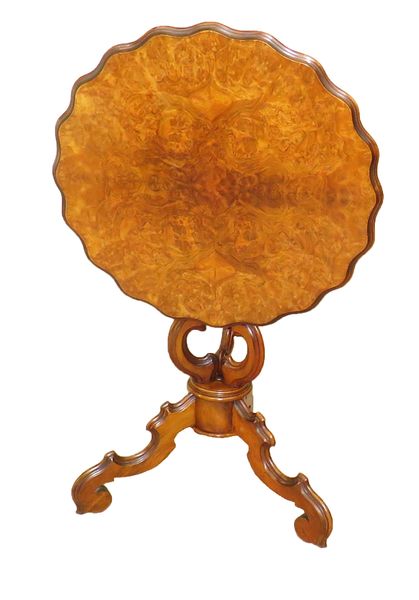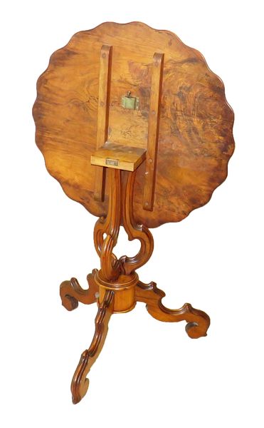 Burr Walnut 19th Century French Antique Tripod Table (France, circa 1860)