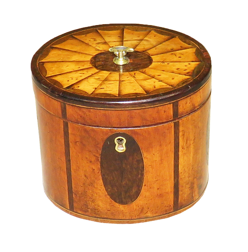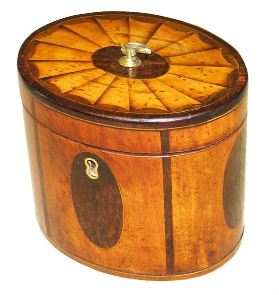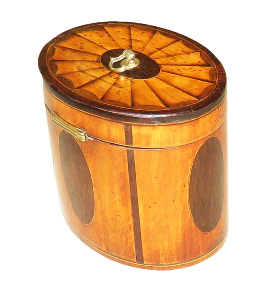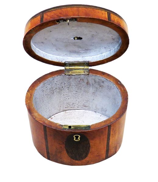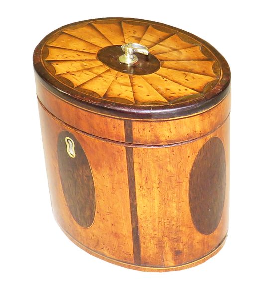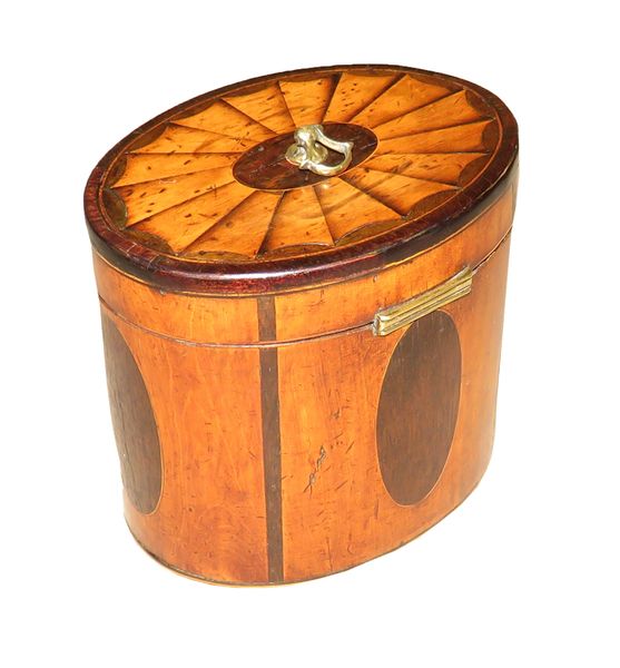 English 18th Century Georgian Satinwood Oval Tea Caddy (England, circa 1790)