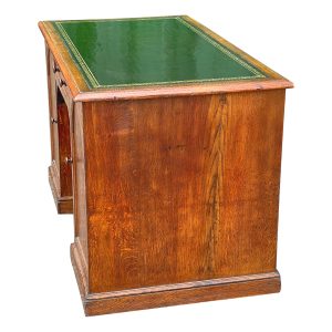 Quite an unusual construction for the period this fabulous desk has some unusual features. One of which is that it is constructed in one piece, as opposed to the far more commonly found three piece construction, where the top detaches from the two pedestals.