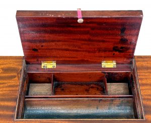 In terms of its function then as the name suggests this type of table, with the little hinged lid was originally designed to be used in a bedroom for occasional correspondence. Now of course it would serve as an incredibly elegant occasional, or lamp type table in a whole host of different places around the home.
