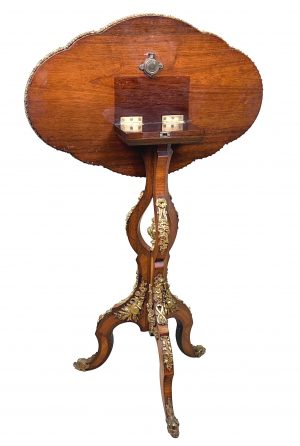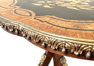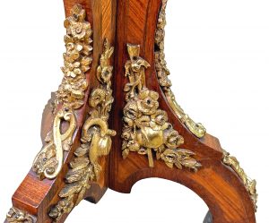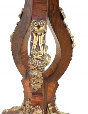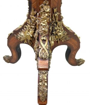 This fabulous quality little wine table was almost certainly constructed in one of the top late 19th century french cabinet making workshops. Every last detail is of the best quality possible and it is absolutely smothered with expensive gilt bronze mounted decoration, which only the best workshops would have been able to afford to purchase in the first place.