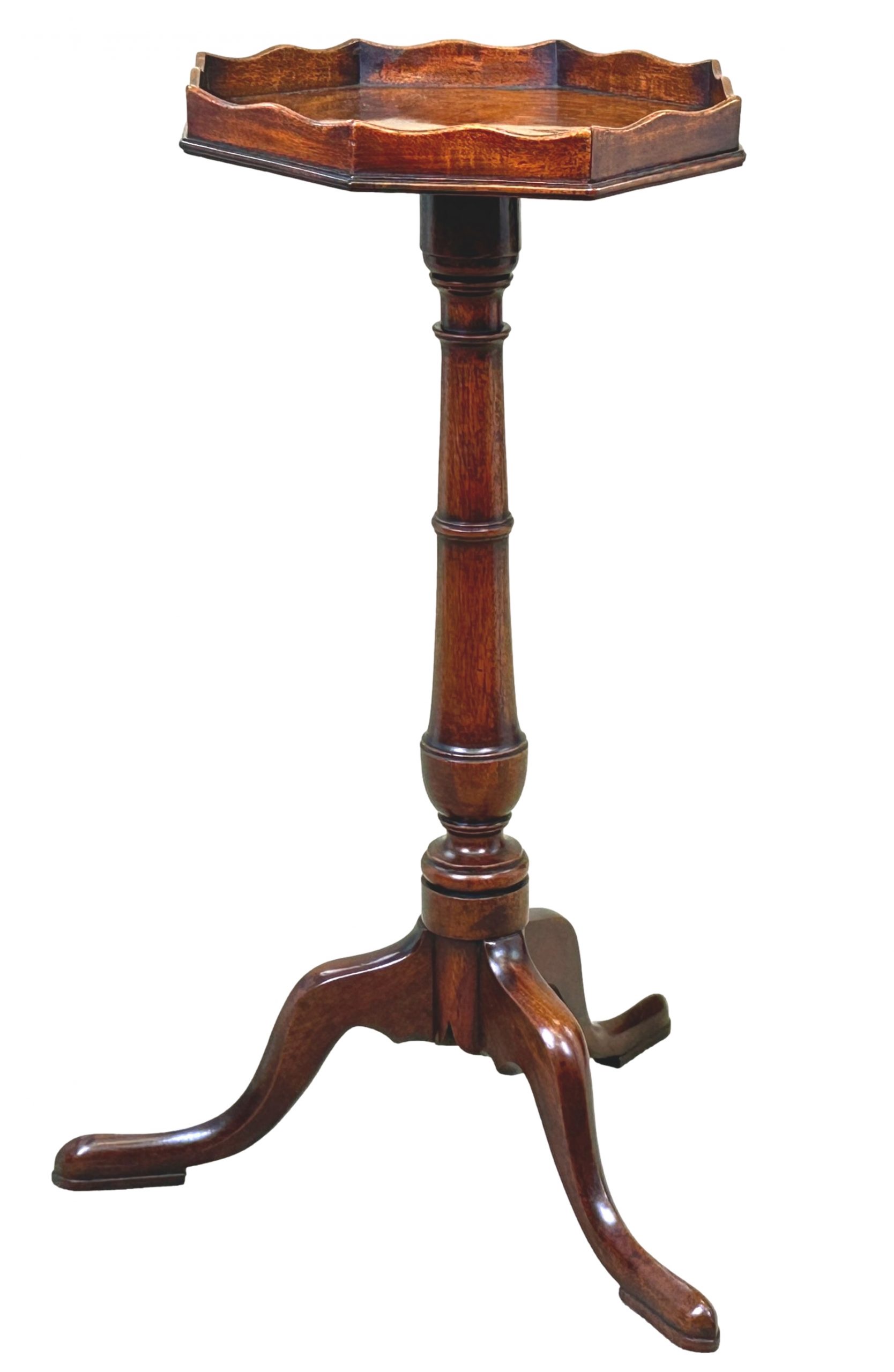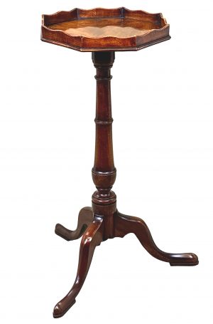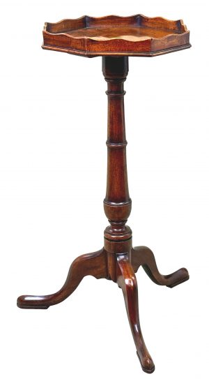 An Extremely Charming 18th Century, Georgian, Mahogany Wine Table, Or Candle Stand, Having Superbly Figured Top With Elegant Wavy Galleried Edge, Raised On Turned Central Column With Splayed Tripod Legs.
