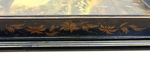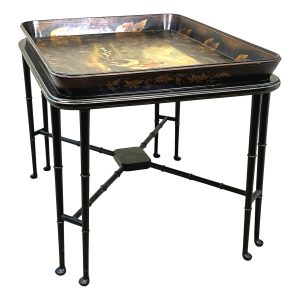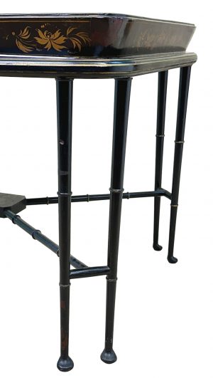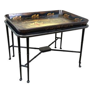 Converting old antique papier mache trays into coffee tables by placing them onto more recently manufactured stands is a great way of recycling old items of furniture which may not have a great amount of purpose to most people these days into something which serves a pupose in any room of any house. Therefore we find many, many antique trays of varying shapes, sizes, dates, qualities and styles turned into coffee tables.