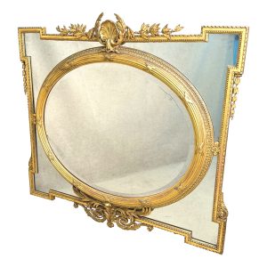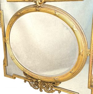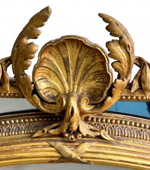 This is a really unusual design of mirror, the like of which we have not really seen much similar to before. It is really quite elegant indeed and the gilded oval frame set centrally is quite lovely by itself, before even considering the outer frame and lovely carved decoration which goes with that.