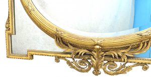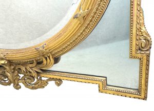 Overall the condition is relatively good. As one would expect with an antique gilded mirror there are various old repairs and minor losses, and there are a few areas where the gilding has rubbed or been chipped away. These all blend in perfectly well however and are exactly as one would expect from a 19th century mirror.
