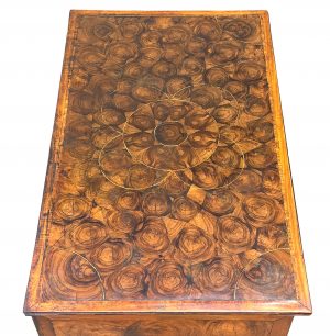 Oyster veeneering is a decorative form of veneering furniture which was initially developed during the 1660’s by English cabinet makers. It involves using very thin slices of wood cut on a cross section, as opposed to straight down the line, of woods which were plentifully available during the 17th century. The most skilled cabinet makers would then take their oyster veneers and use them in all sorts of ways to create decorative patterns on the furniture which they were making.