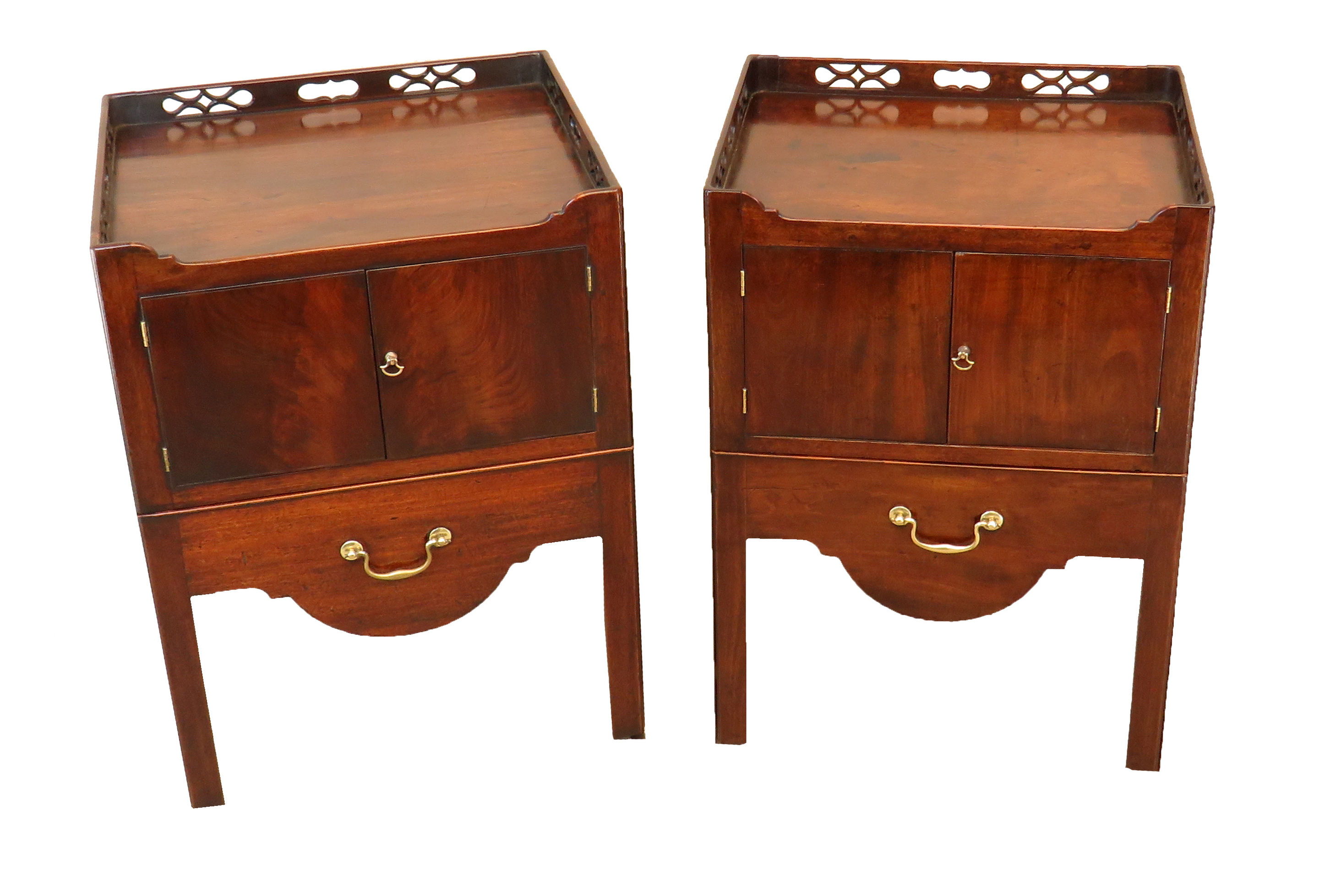 Mahogany 18th Century Pair Of Antique Bedside Night Tables (England, circa 1770)