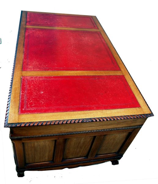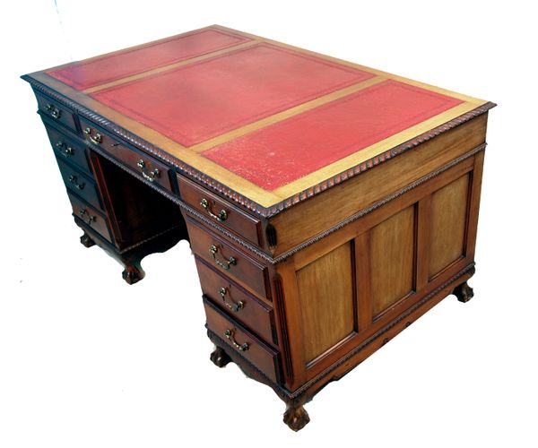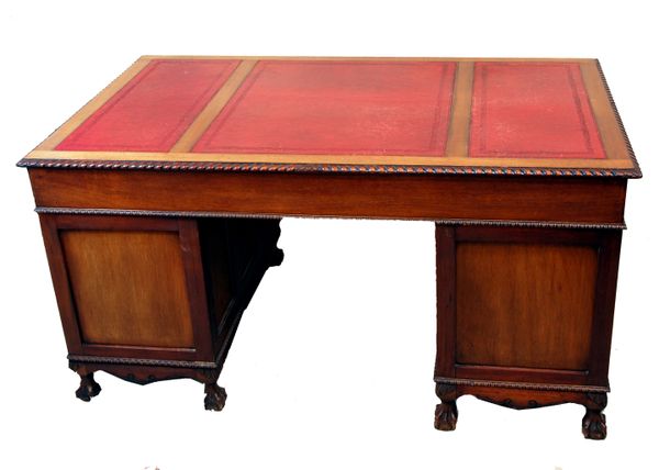 An Early 20th Century Mahogany Pedestal Desk Having Three