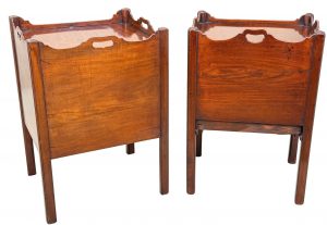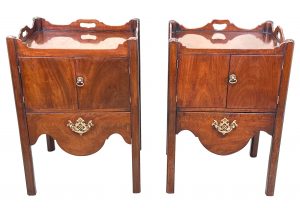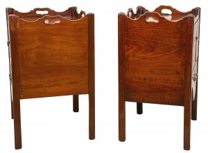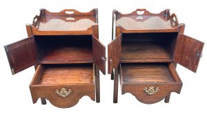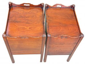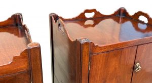 These are great examples of the much sought after Georgian bedside night table, which at some point in their history have been placed together due to their many similarities in both design and size, something which is extremely common due to a relentless demand over many years for matching, or similar tables either side of a bed in combination to the relative scarcity and therefore extremely high price of any true pairs which can be found on the market at any given time.