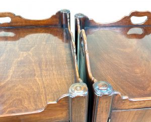 Happily, despite their being noticable differences when placed alonside each other, there is nothing which really stands out when placed either side of a bed or similar. The most obvious differences upon close inspection is the small difference in size, particularly depth, slightly different shaping to some of the moulded decoration and differences in the shaping of the gallery and pierced handles.